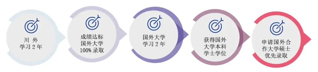 高二或高三学生,申请报读川外2+2国际本科项目,前2年在川外进行语言及专业核心课程的学习,第3年学生可以根据成绩,申请赴国外合作院校攻读剩余本科课程2年,学分修满,成绩合格,符合毕业条件的学生,可以获得国外合作院校的本科学历(学士学位),同时可以申请继续攻读研究生课程或回国参加国内研究生入学考试(海外文凭需认证)。回国后由中国(教育部)留学服务中心提供学历学位认证、落户派遣、回国工作信息等服务。